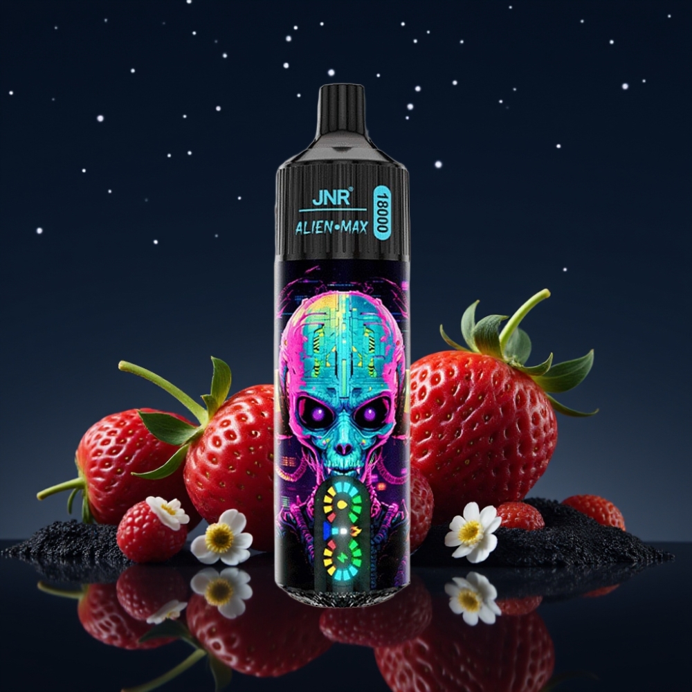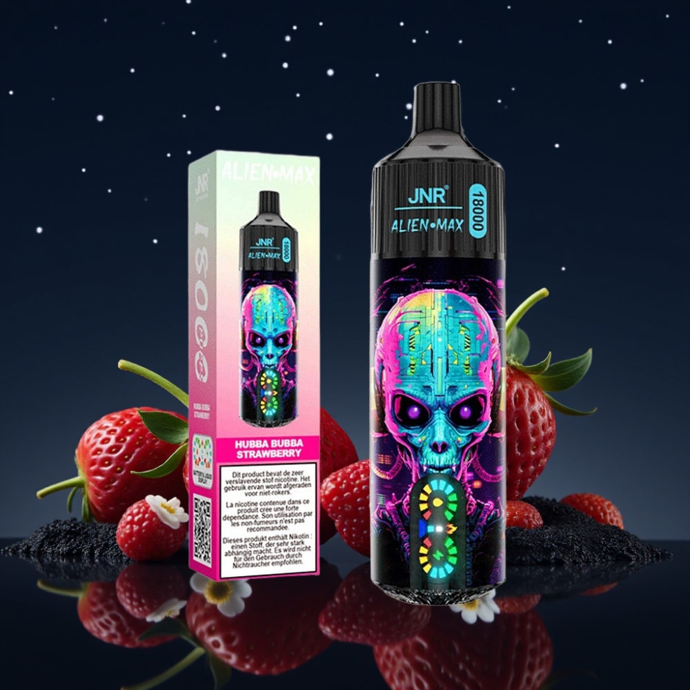JNR Alien Max 18000 Puffs Disposable Vape – 28ml, 850mAh, 20 Skonių, Dual Mesh, USB-C, LED Ekranas, Hubba Bubba Braškė