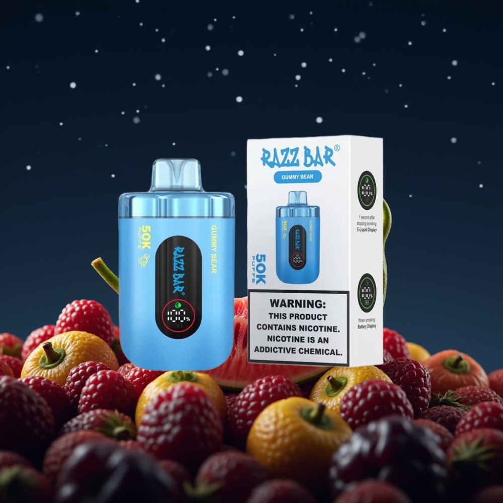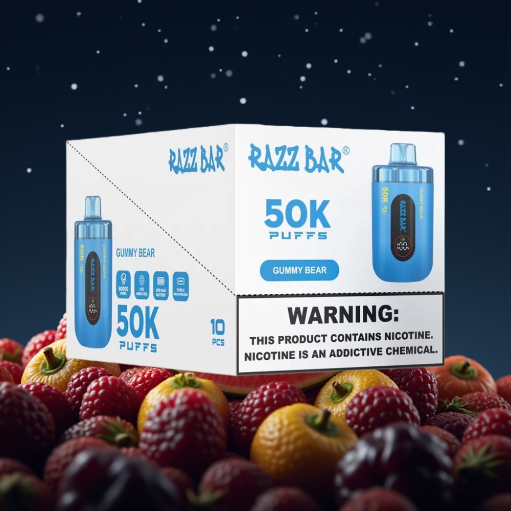 Razz Bar 50K Puffs Disposable Vape Guminukas su 650 mAh Baterija, 1.0 Ohm Tinklelio Apvija, 2% Nikotino