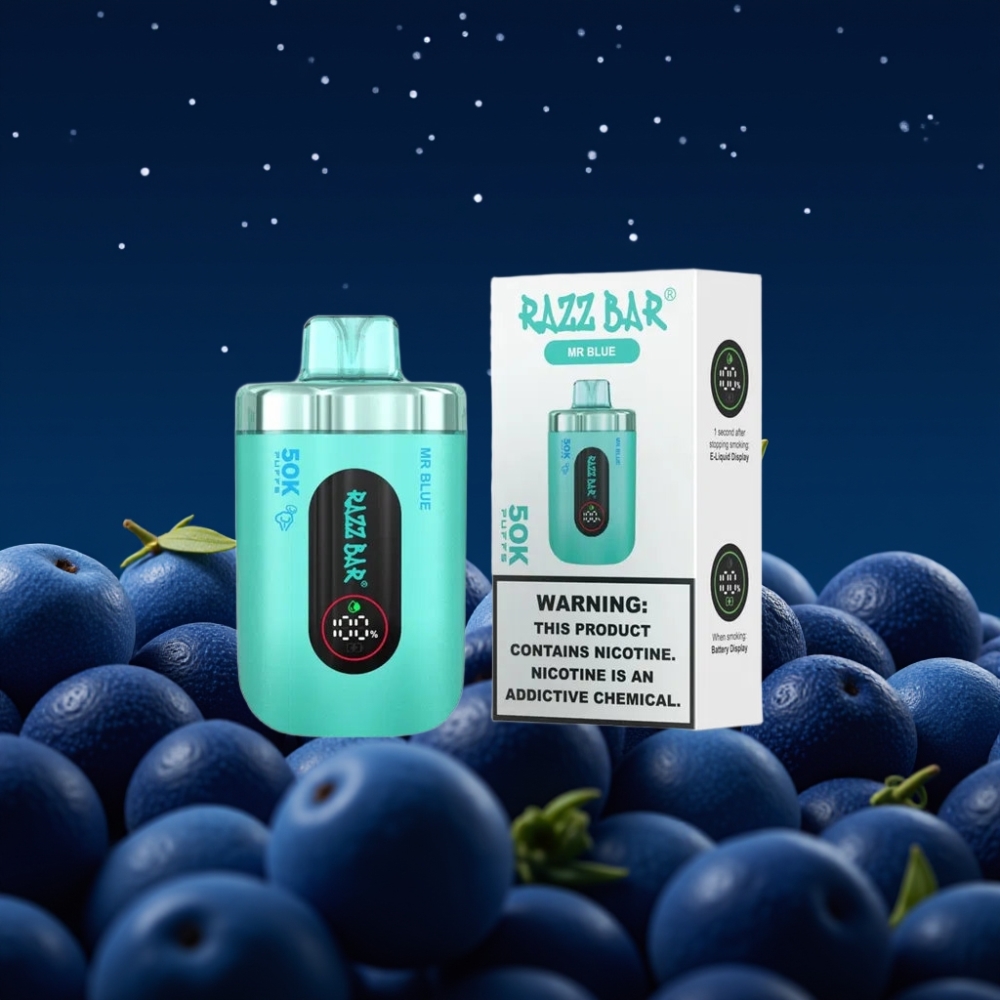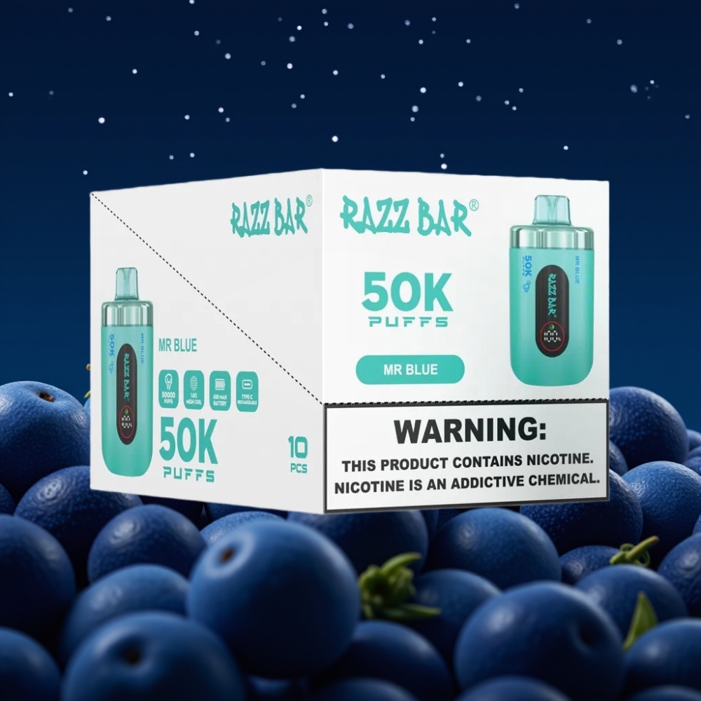 Razz Bar 50K Puffs Disposable Vape Mėlynasis su 50000 užtraukimų, 650 mAh, Type-C