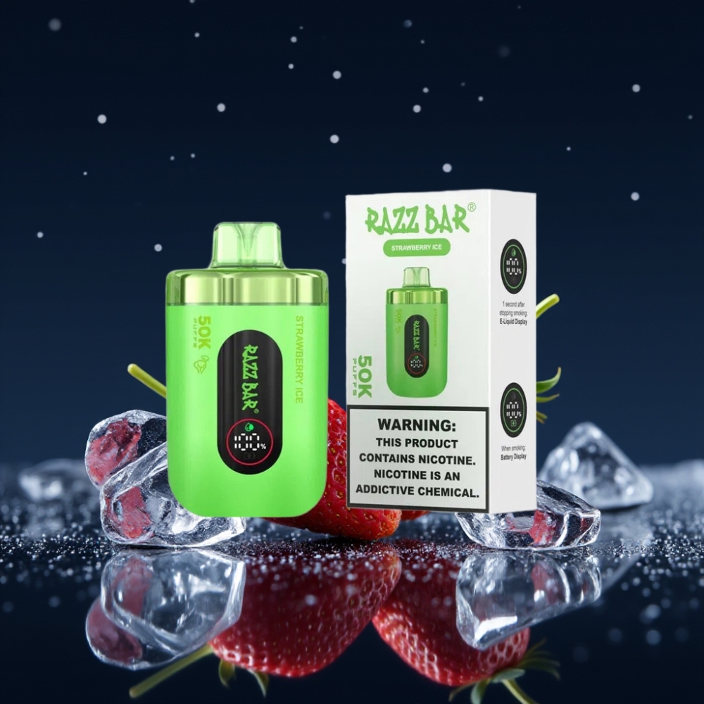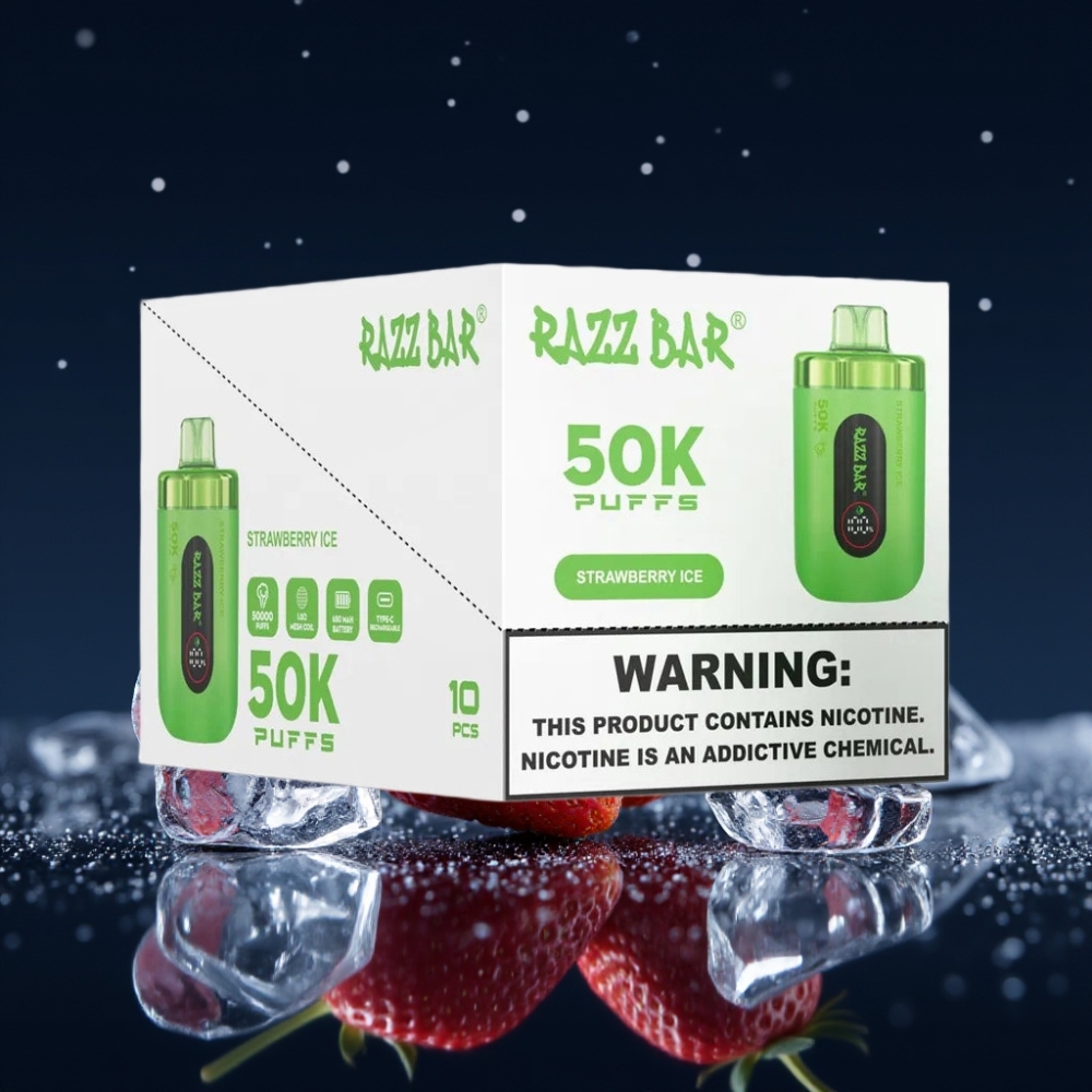 Razz Bar 50K Puffs Disposable Vype Strawberių Ledas su 650 mAh Baterija ir Type-C