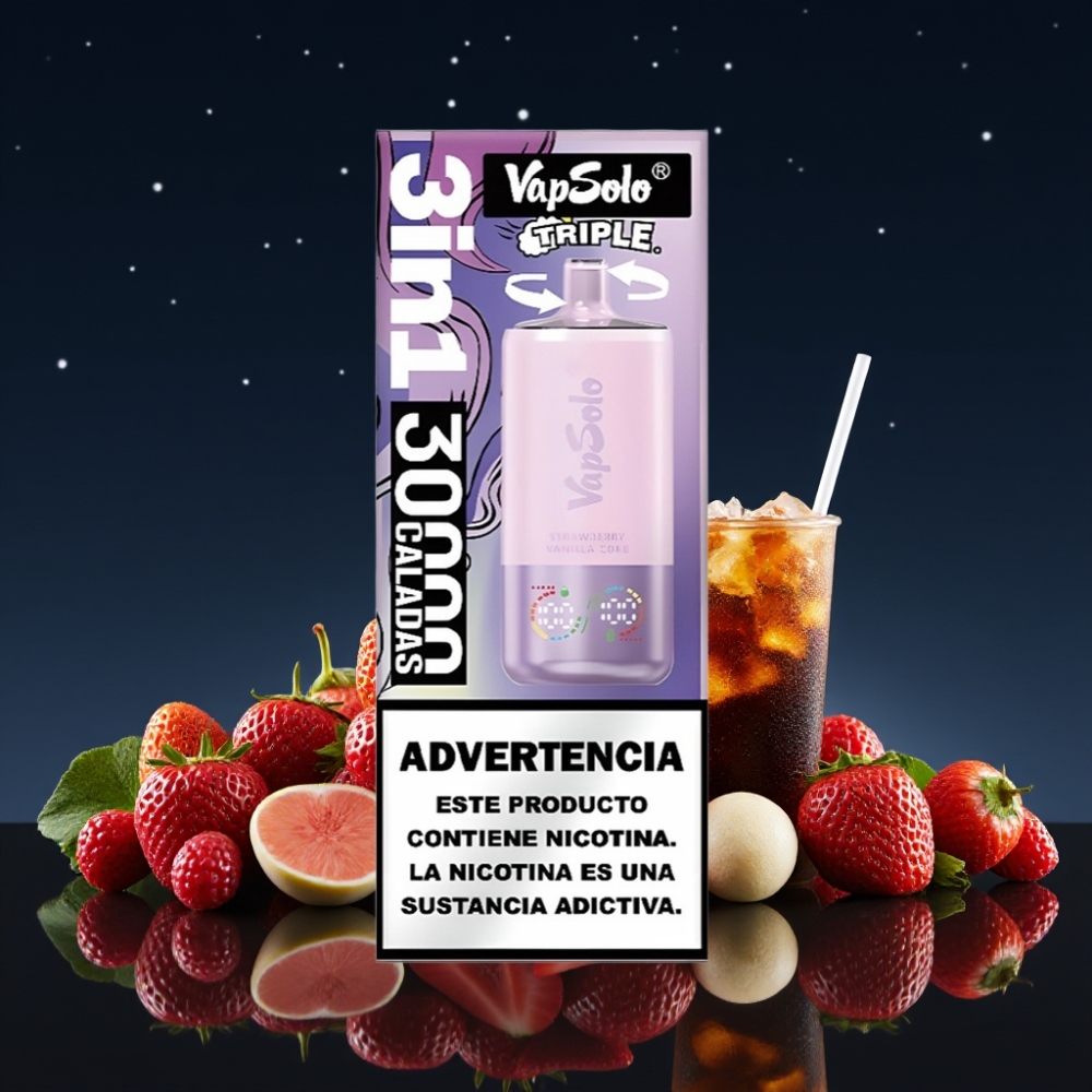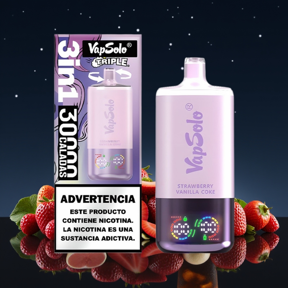 VapSolo Triple 30000 Puffs Disposable Vape Braškų Vanilės Kolos Skonis 40ml 50mg/ml Type-C